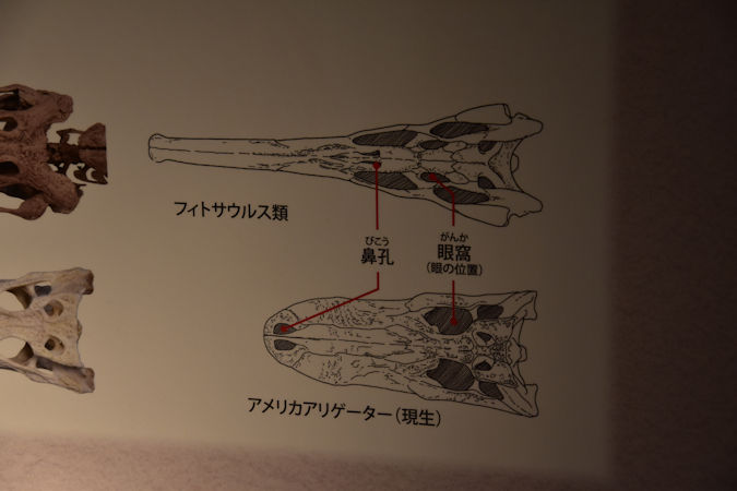 巨大恐竜がなぜ大型化したかのキャプションも近くにありました。エサをかまずにのみこむことと、気嚢を持っていたこと、骨の成長が早いことで説明していました。卵をたくさん産むから絶滅しにくいというのも理由にありますが・・・、これはおまけですね。
