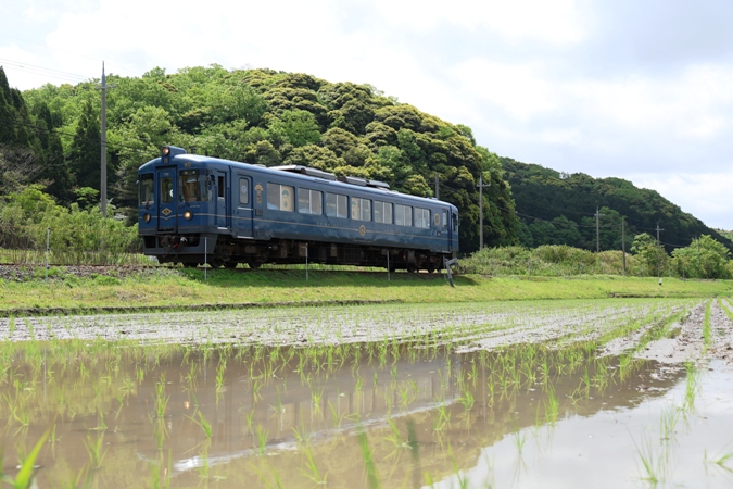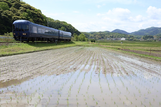 その列車と田圃に群れるアオサギ達と絡めて・・・