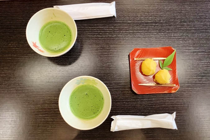 先ずはお抹茶とお茶菓子のおもてなしから でも昼食のせいで胸やけが(汗笑)