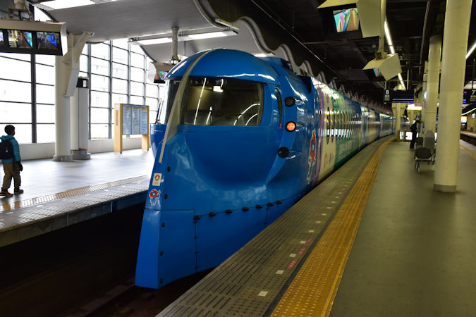 ここで南海電鉄に乗り換え、難波駅のホームに行くと南海50000系50501F「大阪・関西万博ラッピング」がいました。
