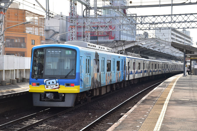 新今宮駅に移動し、泉北高速鉄道のキャラクター「せんぼくん」、鉄道むすめ「和泉こうみ」ラッピング車両(5000系)をゲット。