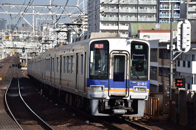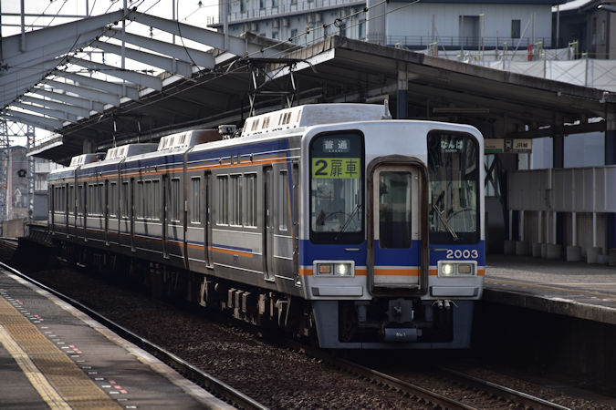 南海2000系。こちらは当時、2000系として最後まで南海本線で運用された2003編成で、大きく2扉車と表記されています。約1週間後の12月21日運用改正で南海本線の運用を終了しています。