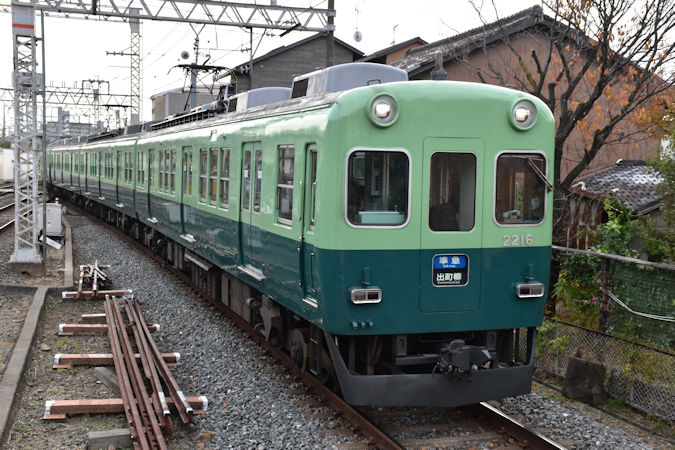 丹波橋駅で下車し、京阪2200系2216編成(リバイバルカラー)を撮影。