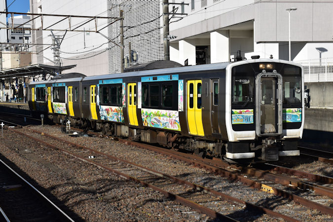 この日は新金貨物線で185系C1編成による団体臨時列車が運転されるというので、デューク所員に誘われて出撃…することになったのを、私のワガママで水戸へ。まずは、3か月間の期間限定で運転されている水郡線90周年ラッピング車に運よく撮影出来ました。ダイヤ非公開なので、これは奇跡的な出会い…。