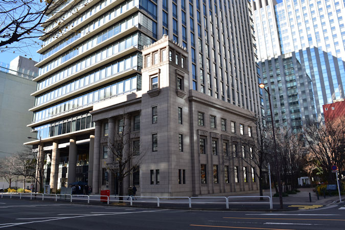 こちらは学士会館近くの再開発ビルに残る近代建築。1930(昭和5)年築で、岡田信一郎が設計を手掛けた博報堂旧本館の外観を一部保存したもので、2015(平成27)年に竣工しました。内部は一新されており、一部だけ残っただけでもありがたいというべきか・・・う〜ん・・・。