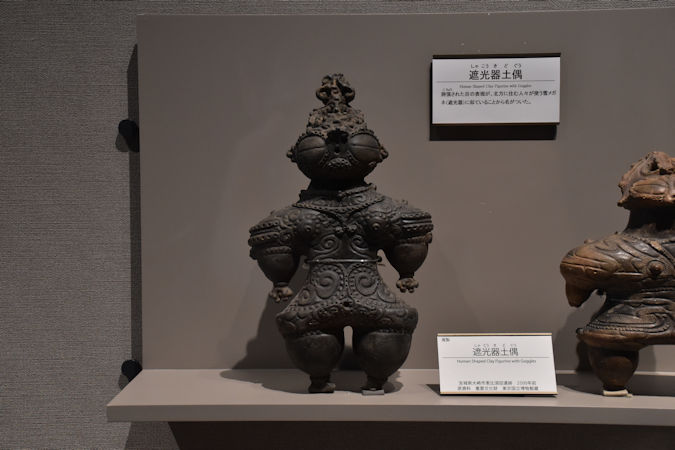 遮光器土偶。誇張した目の表現が、遮光器(雪眼鏡)に似ていることからついた名前です。