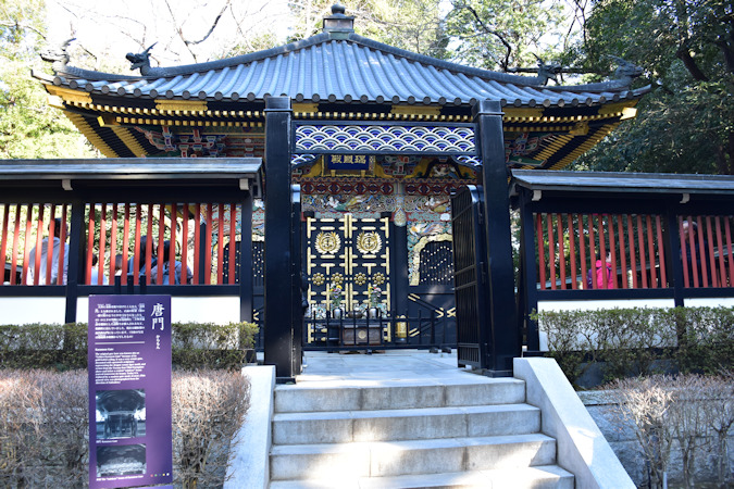 唐門。こちも焼失前と異なり簡略化されていますが、往時は天井に金箔を貼ったことから金唐門とも称されました。