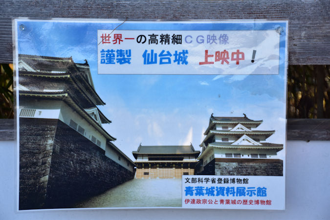 また、本丸跡にある仙台城見聞館には本丸御殿大広間の一部(上段の間)が再現されているほか、本丸御殿の復元模型があります。