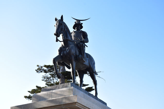 現在の仙台城のシンボルは、伊達政宗像。