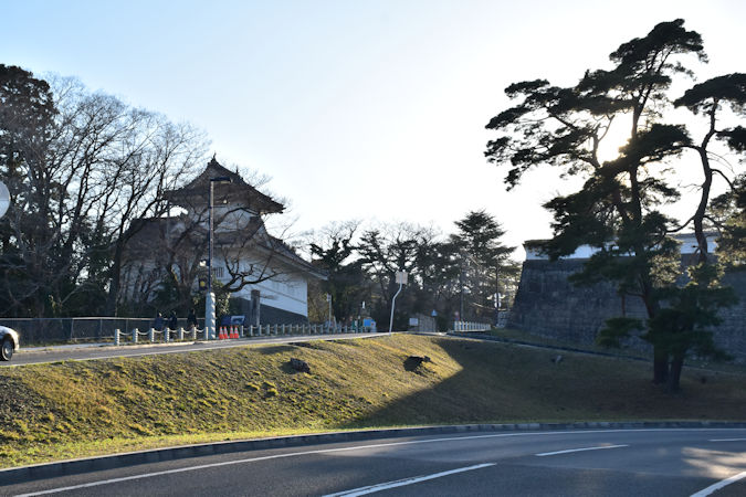 また、大手門跡の脇に再建された隅櫓が、忠実な復元ではないとはいえ、城らしさを伝えています。