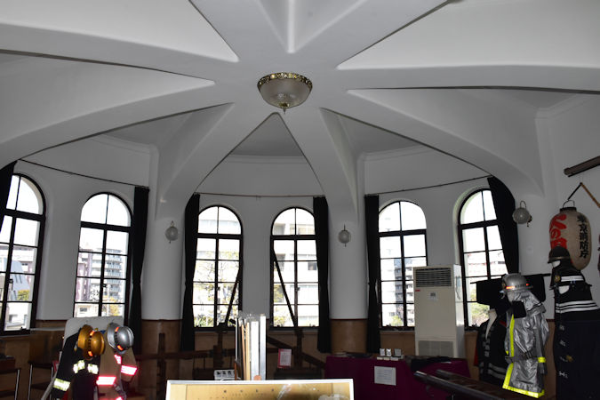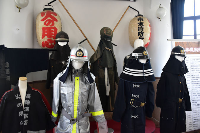 見学OKとのことだったので、消防署の皆様がお忙しい中、大変恐縮ですが、事務室にお声がけして見学。こちらは3階の講堂で、消防に関する様々な展示室として公開されています。