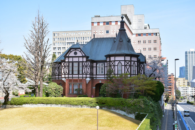 続いて、明治学院大学の前を通ったので、明治学院チャペル(礼拝堂)を撮影。1916(大正5)年築で、設計はW.Mヴォーリズ。ヴォーリズ自身の結婚式に使われたほか、1931(昭和6)年に両袖の増築工事が行われ、現在の姿に。2009(平成21)年10月に更新されたオルガンは、いったん失われた17-18世紀のヨーロッパの工法を再現したものです。港区指定有形文化財、東京都「特に景観上重要な歴史的建造物等」に指定されています。