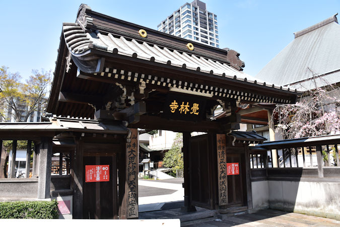 続いて覚林寺へ。こちらは日蓮宗の寺院で山号は最正山。安土桃山時代・江戸時代初期の武将である加藤清正を祀り、1845(弘化2)年の大火後に再建された、1856(安政3年)築の山門(上写真)と、1865(慶応元)年築の清正公堂が残り、港区の有形文化財に指定されています。