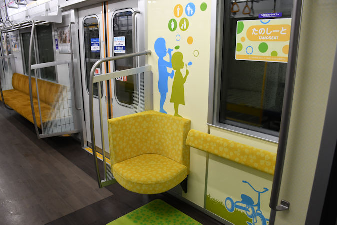 車内のテーマは「リビング」で、その中でも4号車には家族連れをターゲットにした優先席の『たのしーと』が設置されています。ベビーカーを置いてその真横に座ることも可能です。