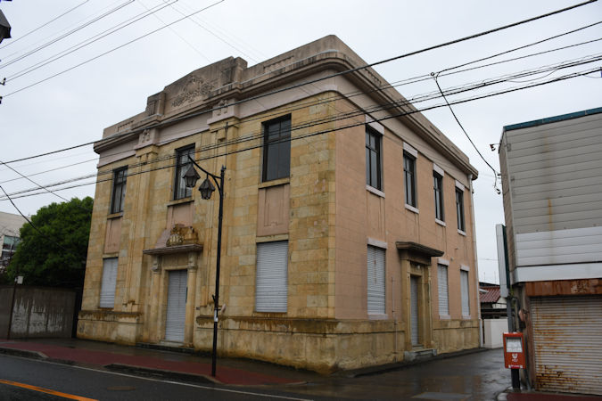 さて、野田市駅周辺には様々な近代建築が残されています。こちらは、千秋社(旧・野田商誘銀行)。1926(大正15)年築で、設計は斉藤久孝。鉄筋コンクリート構造2階建で、近代化産業遺産に指定されています。茂木・高梨家ら野田の醤油醸造業者が設立した銀行で、名前にある「商誘」も「醤油(しょうゆ)」にちなんで名づけられたとか。1944(昭和19)年に野田商誘銀行は国策により千葉銀行と合併し、その後はキッコーマン創業家一族が保有する千秋社が建物を保有しています。
