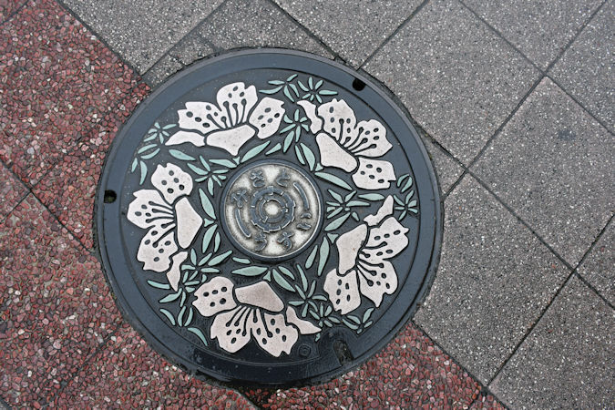片町文化センター前に同じマンホールが設置されています。