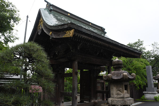 西府中駅前、旧甲州街道沿いにある西光寺へ。天台宗の寺院で山名は長谷山。1396(応永2)年に開創したと推定され、江戸幕府が開府した際に甲州街道の宿場維持のため、布田五宿の一つ上石原宿の中心である当地へ移転しました。寛永年間に天台宗の寺院へ改められ、宝永年間(1704〜10年)に大僧都弁雄が建てた仁王門(上写真)が今も残り、調布市の文化財(市重宝)に指定されています。