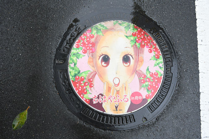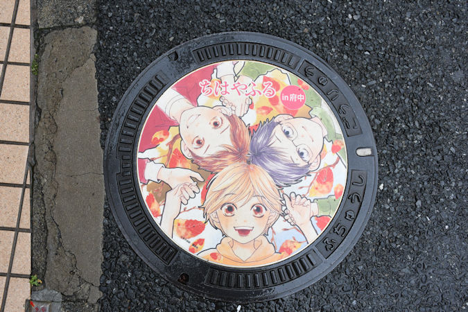 府中市の「ちはやふる」マンホールを撮影していきます。