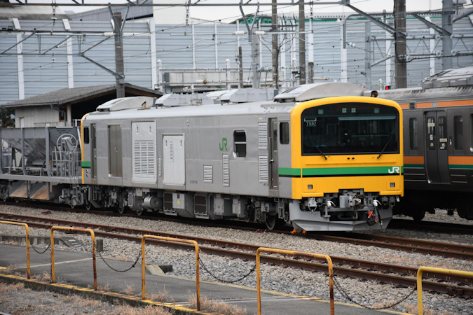 GV-E197系は、JR東日本が砕石(バラスト)輸送および散布用に使用していた各種機関車と事業用貨車を置き換えるために開発した事業用車両で、新潟トランシス製。ディーゼル・エレクトリック方式の電気式気動車GV-E197形(両運転台構造でオールステンレス車体で、車両前面はFRP=繊維強化プラスチック)を編成の両端に、砕石輸送用のホッパ車であるGV-E196形(車体は普通鋼製)を中間に4両連結した、6両編成で運用されるのが基本である。