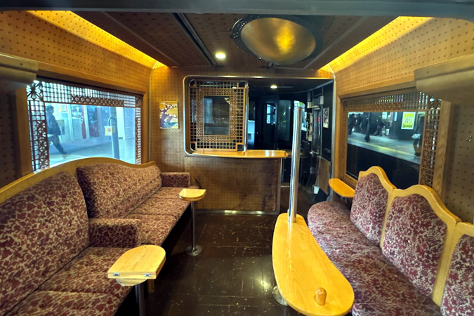 リニューアル後の車内。こちらは運転席後ろのフリースペース。ソファが設置されています。