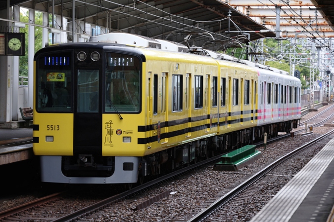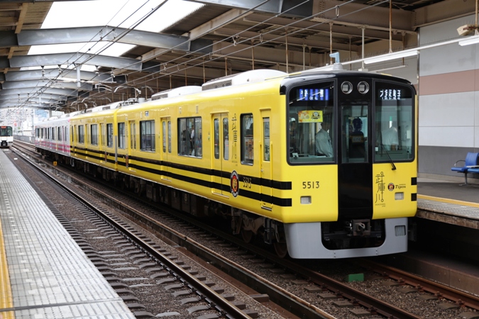 2025(令和7)年10月3日(金)〜5日(日)、阪神タイガースのセントラル・リーグ2025の優勝を記念し、普段は武庫川線を走行している5500系「タイガース号」と「トラッキー号」を併結させて、平日3往復、土日3往復半を本線の普通列車として運行されました。10月4日(土)の模様を撮影しましたのでご紹介します。残念ながら生憎の空模様でしたけれど、多くの皆さんが各駅に出掛けておられ、関心の高さが伺えたとともに、一般の皆さんもスマホ等を向けられるなど和やかな雰囲気に包まれておりました。