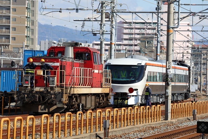 特急「しなの」用385系2両が甲種輸送される