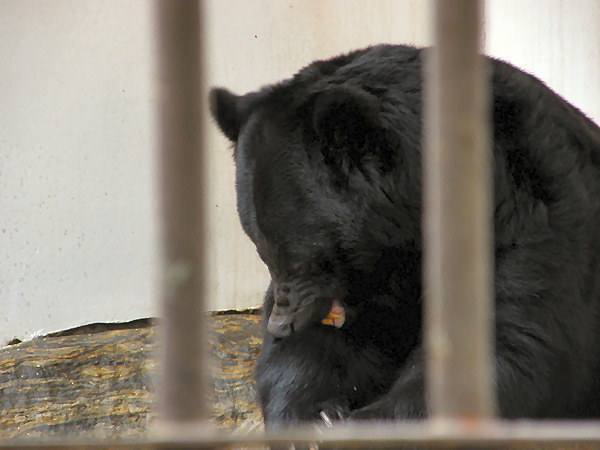 東アジアに広く生息しているツキノワグマ(ヒマラヤグマ)の日本の亜種で、広く分布していましたが、人の生活範囲の拡大もあり九州では絶滅し、四国でも残り僅かといった状況。農作物を求めて人里に出没して捕獲され、殺処分されることが多く、人間との共存が課題です。なお、本来は積極的に人を襲うことは無いそうです。ちなみにツキノワグマは雑食性。木の実や果実、昆虫等も食べます。