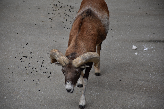 家畜のヒツジの原種(祖先)の1つと云われているもの。野生の羊の中では小柄な部類で、体長は約0.6m〜1.0m、体重は約25kg〜50kg。アルメニア、アゼルバイジャン、ウズベキスタン、イラン、トルコ、インドなどの山岳地帯に生息し、崖のような斜面も平気で登っていくのが特徴です。立派な角があるのはオスで、メスには角はあっても非常に小さいものです。