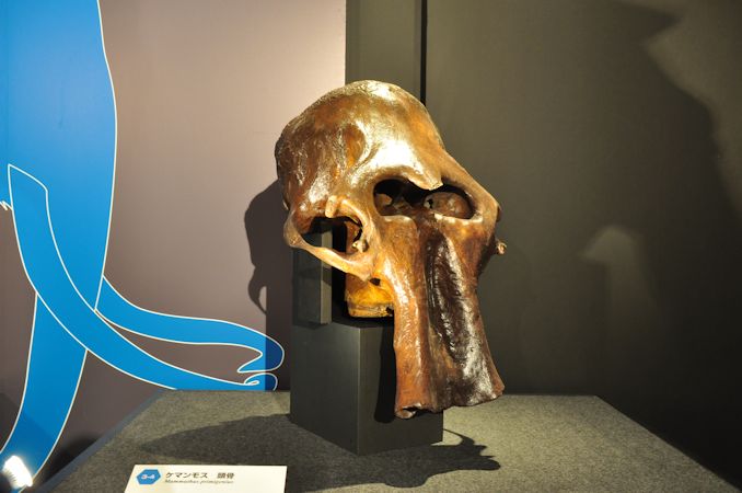 会場の入口では、ナウマンゾウの復元モデルが動いていました。なんで、特別展のテーマであるケマンモスではないのでしょう・・・?