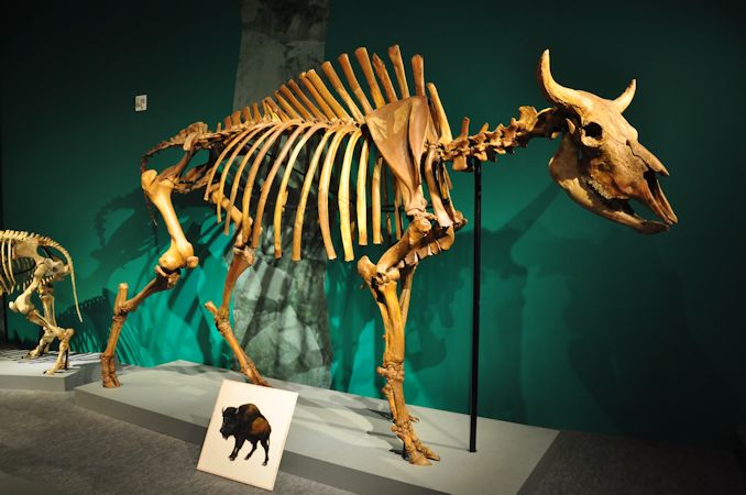 大陸に生息したステップ・バイソンと同種で、更新世後期に棲息。岩手県一関市で発見されました。