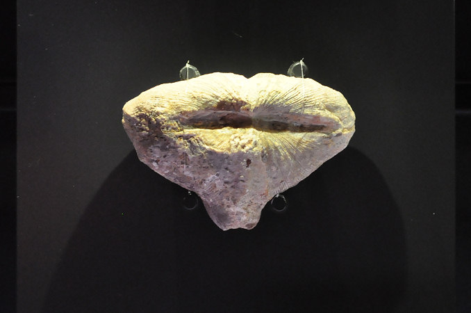 オルサカンサス (北九州市立 いのちのたび博物館にて) 軟骨魚類の一種。 アカントーデス (国立科学博物館にて) 棘魚類の一種。棘魚類は、ペルム紀を最後に姿を消します。 パラムブリュプテルス (国立科学博物館にて) 条鰭魚類の一種。 ディティモピゲ (国立科学博物館にて) 三葉虫の一種。このペルム紀で三葉虫は姿を消しました。ところで、随分と小さいですな。 ![]() メタレゴセラス(左) エオティニテス(右) (国立科学博物館にて) アンモナイトの一種。 ![]() スピリファー (国立科学博物館にて) 腕足類(二枚貝のようなもの)の一種。この時代で腕足類の多くが姿を消します。 ![]() パラフズリナ (国立科学博物館にて) 宮城県気仙沼市から発掘。 ![]() フズリナの断面モデル (国立科学博物館にて) |
