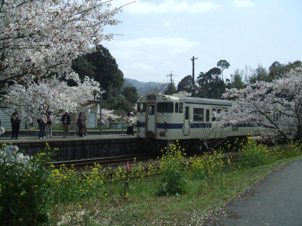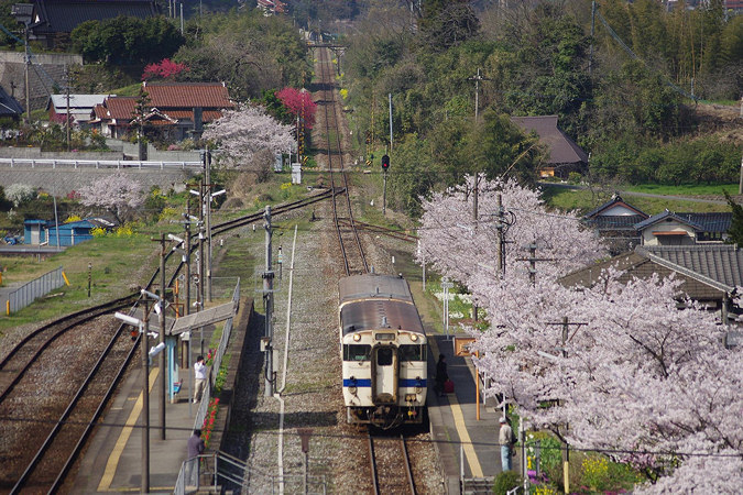 かつては銅を採掘していたため、このような地名が付いた福岡県田川郡香春町採銅所にある、JR日田彦山線の採銅所駅。桜と菜の花が咲く、のどかな風景が見られます。
