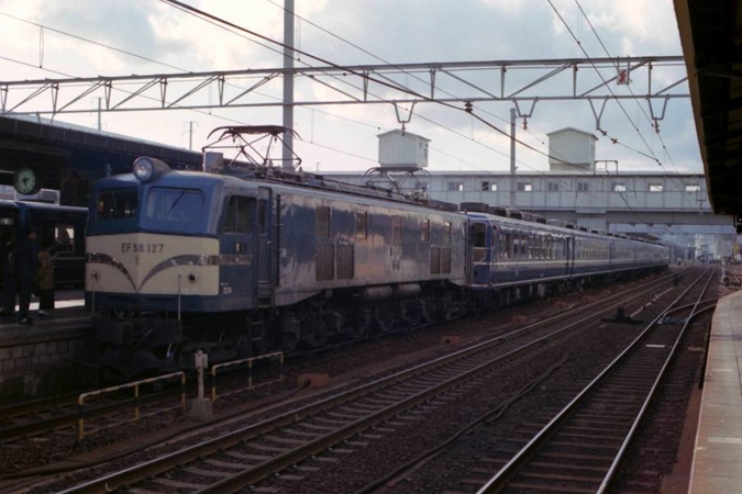 ここで紹介するEF58の詳細は、色々な方々が詳しくウェブ上で公開されていらっしゃいますのでそちらにお譲りするとして、姫路在住の私には、小学生の頃はEF65に混ざって関西発着のブルートレイン牽引機として、その後に同機が東京発着専用となった後は、関西専用機としての活躍が鮮明な記憶として心に残っています。
