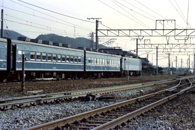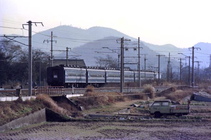 スロ62、スロフ62を改造して生まれた『お座敷客車』も12系客車をタネ車とした「お座敷客車」の増備や「サロンエクスプレス東京」や「サロンカーなにわ」の誕生により、老朽化が目立つようになり、順次、置き換えられていきましたが、宮原客車区の編成も14系客車をタネ車とした「みやび」の誕生を控えた昭和61年1月下旬、「さよなら号姫路地区湯村観光の旅号」と称し、湯村温泉へ向かう団体旅行での運用を最後に引退することになりました。その光景を撮影しておりますのでお愉しみ下さい。(使用機種:CANON A−T、執筆 平成25年3月14日)