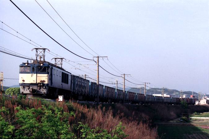 長女と次女を伴ってマイカーで西下。今でならお立ち台を紹介するHPで下調べしてから出向くところですが、当時はそこまで気合いが入ってなかったので、ネット情報に依れば今年春に急逝された里見純一さんが、主宰されていたホームページ「北総レール倶楽部」で公開されていた山陽本線庭瀬−中庄間の足守川橋梁左岸の土手を選びました。