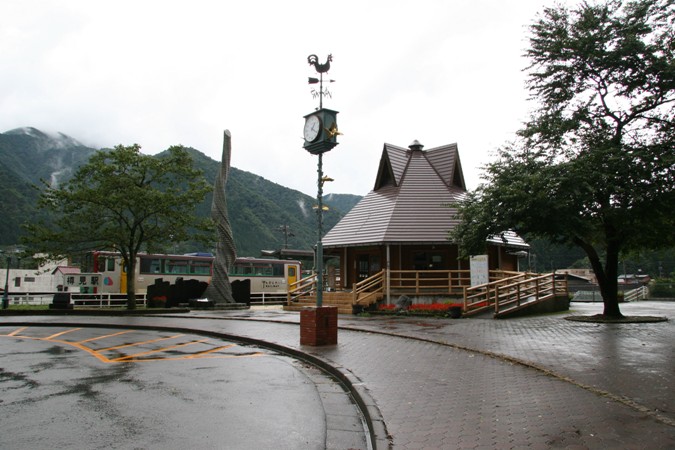駅前広場から駅舎を入れて撮影 ハイモ230-312 16レ/樽見鉄道樽見駅