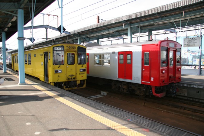 (左)キハ125-7 分ホウ 8533D (右)クモハ102-1511 本カラ 650C/唐津線唐津駅