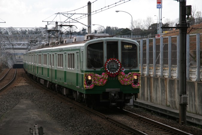 名谷車庫からトップナンバー編成の記念列車が回送されてきました