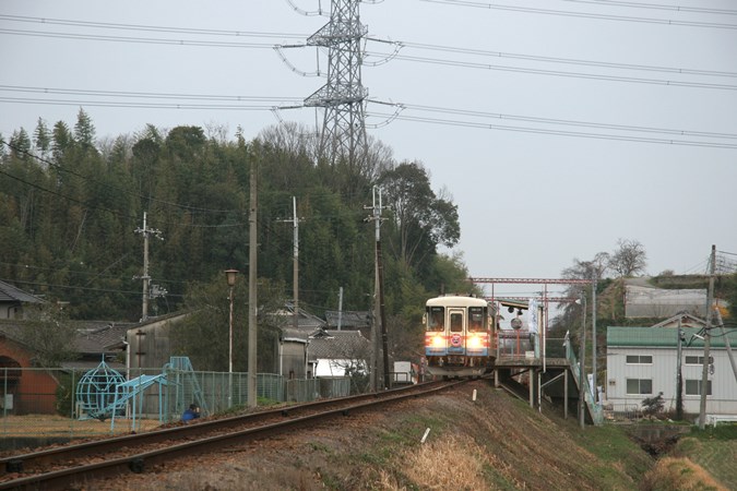 遠く下石野駅に停車する列車が見えます/ミキ300-104 111レ