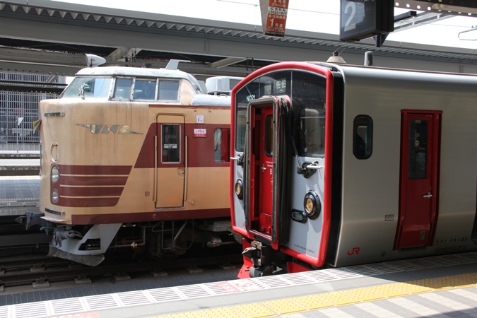 (左)クハ481-256 分オイ 9090M いそかぜ (右)クハ814-21 分オイ 4639M/日豊本線大分駅
