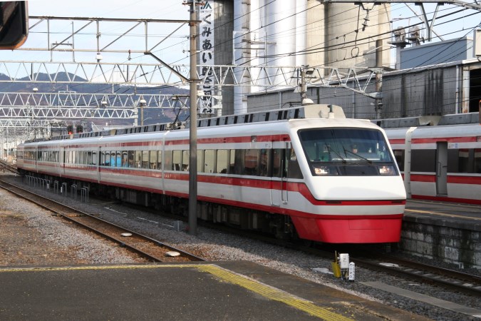 特急列車の行き違いがありました (左)モハ208-6 1834レ りょうもう34号 (右)モハ251-6 1427レ りょうもう27号/東武鉄道伊勢崎線館林駅