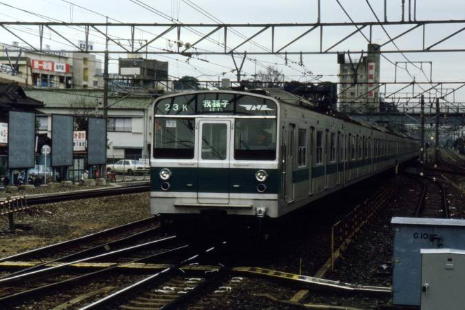 さて、最後になりましたが、国鉄時代に撮影した唯一のカラー写真を。リバーサルの劣化やスキャニング技術等が稚拙なことから色合いが今ひとつですが御容赦を。1985(昭60)年3月12日に松戸駅で捉えた、正面のJNRマークが誇らしいクハ203-2(北マト)です。