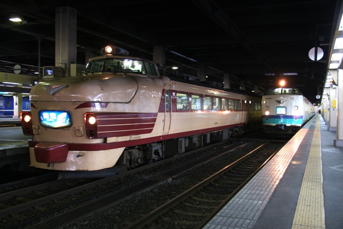 /2009.03.29 (左)クハ489-5 金サワ 601M 能登 (右)クハ481-352 新ニイ 1051M 北越1号 北陸本線金沢駅