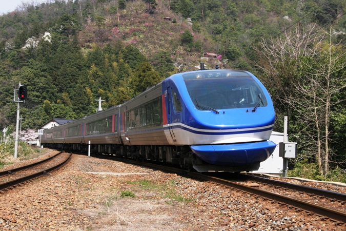 桜を愛でていると入れ違いの特急が高速で駆け抜けて行きました
