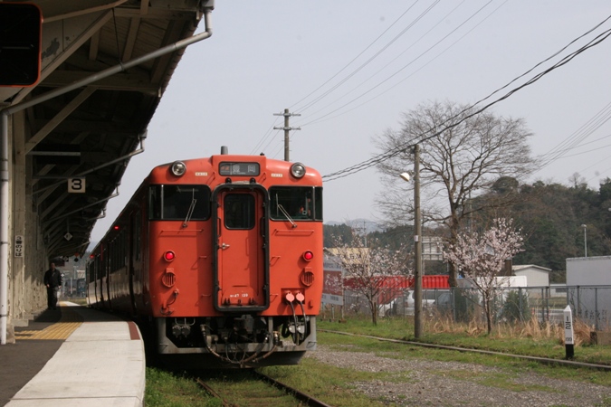 青春18切符の最終有効日に当る2011(平23)年4月10日(日)。丁度1日分を残していた私は、地元要望で前週の土曜日より運行開始した臨時列車「快速 山陰海岸ジオライナー号」に試乗してみようと思い立ちました。この列車は、鳥取方と豊岡方の双方から一往復ずつ設定して頂きましたが、その中で最も利用が低いと思われる豊岡車充当の鳥取発に合わせた日帰り行程を組み、ちょっとしたプチ旅気分で出掛けました。尚、掲載内容はRJ誌の様な列車追跡ではありません。念のため・・・。