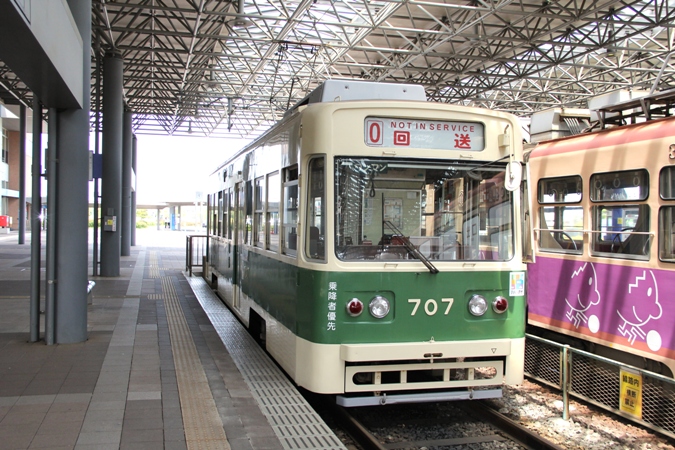 (左)3004B 千田 (右)5102B 千田 列番不明/宇品線広島港電停