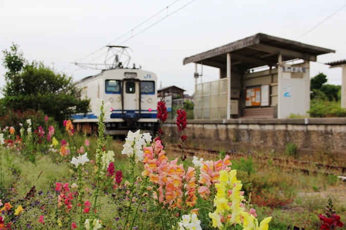 第一回の撮影後、県道33号をひた走り、一旦小月駅東方に辿り着きました。目の前の橋梁横も良かったんですが、車を東へ走らせて、再度、数台の先客の居られた駐車しやすいポイントにすれば、またまた有名ポイントやったんでした(笑)