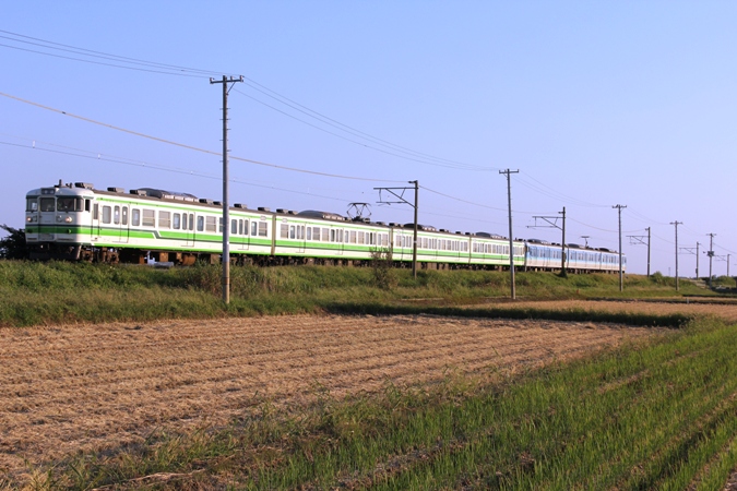 クハ115-1025 新ニイ(上) クモハ115-1083 長ナノ(下) 163M/越後線越後赤塚−内野西が丘間