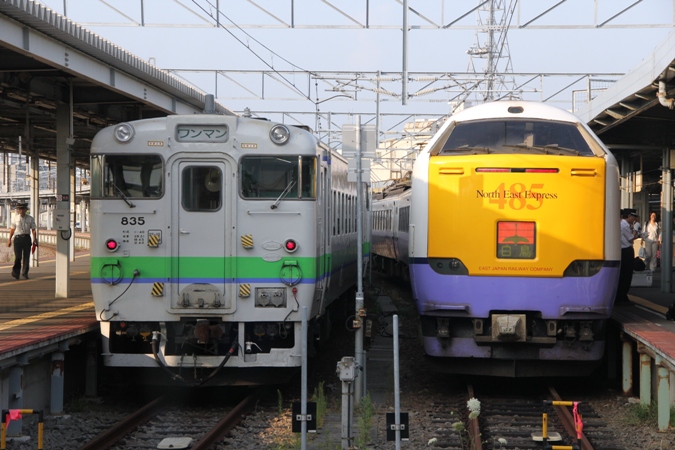 (左)キハ40-835 函ハコ (右)クロハ481-3012 盛アオ 4017M 白鳥17号/函館本線函館駅