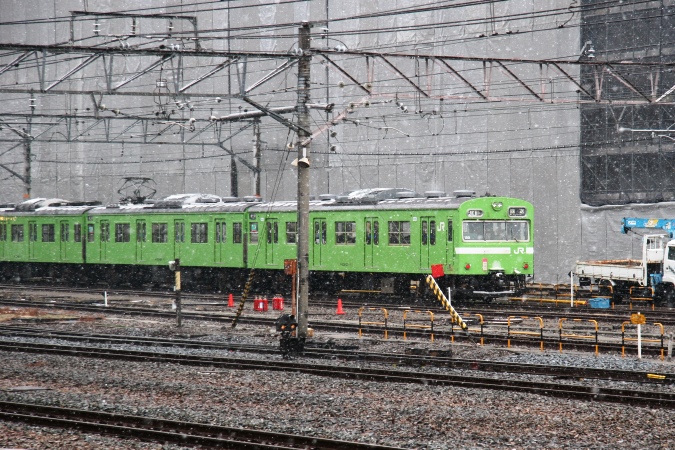 この日を初日に大寒波が関西を襲ってきて大変な騒ぎでした(笑)電留線に佇む103系